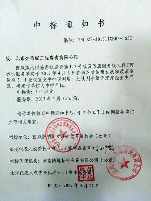 2017年4月,我公司成功中標(biāo)西雙版納州旅游軌道交通1、2號線及傣族園專線工程PPP咨詢服務(wù)采購項(xiàng)目。